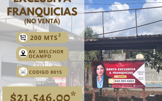 Puede ponerse en contacto con Xóchilt Castañon via Whatsapp: +52 443 360 6363 Por favor, utilice el #%id para identificar la propiedad "Terreno en Renta exclusivo para franquicias sobre Av. Melchor Ocampo"