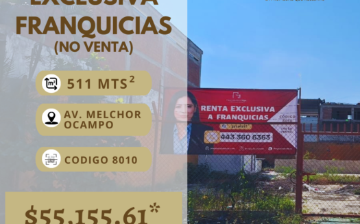 Puede ponerse en contacto con Xóchilt Castañon via Whatsapp: +52 443 360 6363 Por favor, utilice el #%id para identificar la propiedad "Terreno en renta para franquicias en Av. Melchor Ocampo"