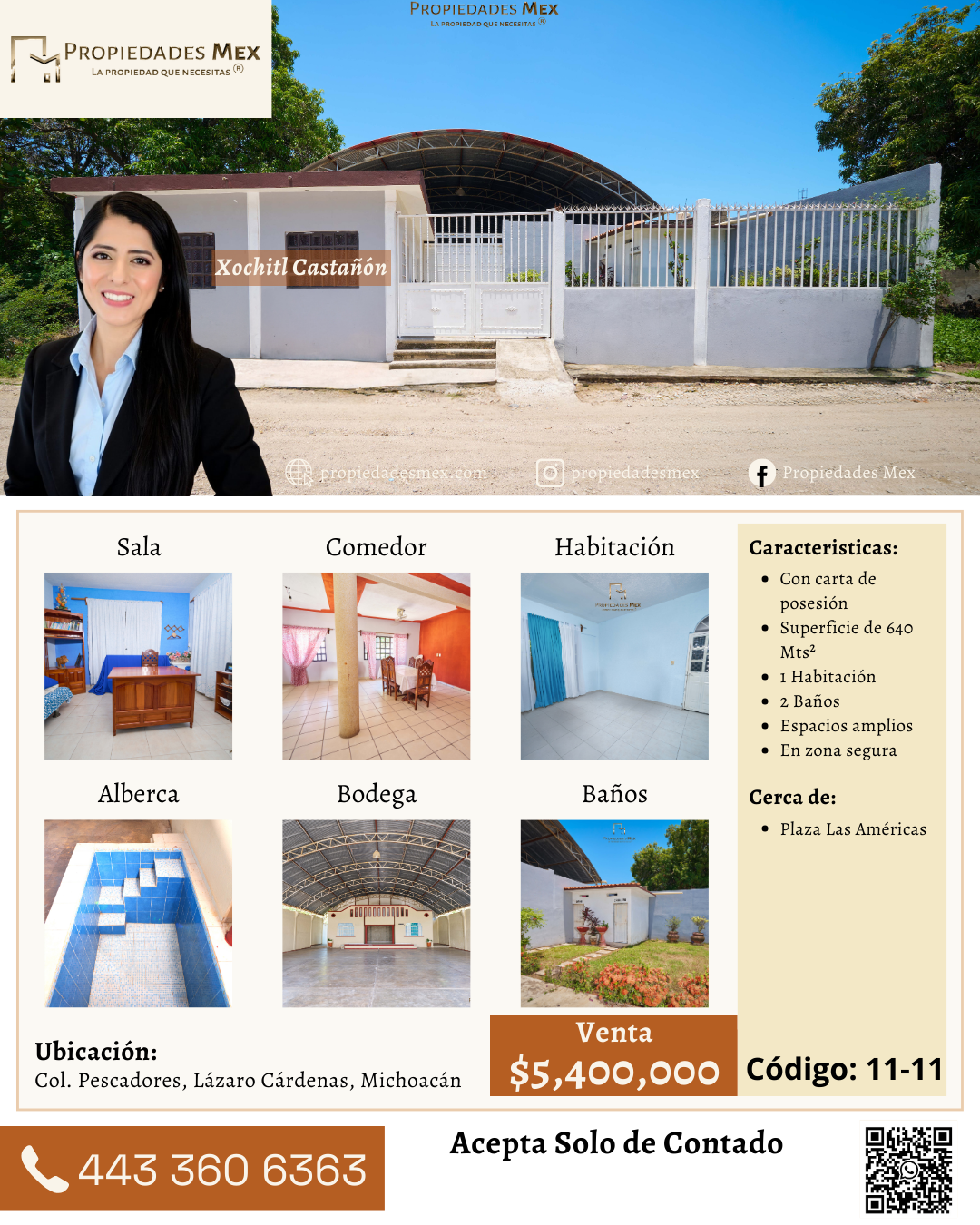 Esta propiedad cuenta con una amplia bodega ideal para almacenamiento, taller o negocio, acompañada de una pequeña vivienda adjunta, perfecta para oficina, descanso o uso habitacional.