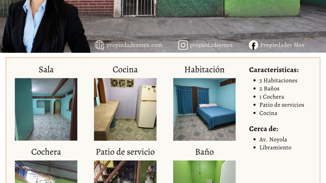 La propiedad cuenta con 105 m² de terreno y una distribución que incluye 3 recámaras, 2 baños, sala, comedor y cocina, ofreciendo áreas que pueden adaptarse a diferentes necesidades de vivienda.