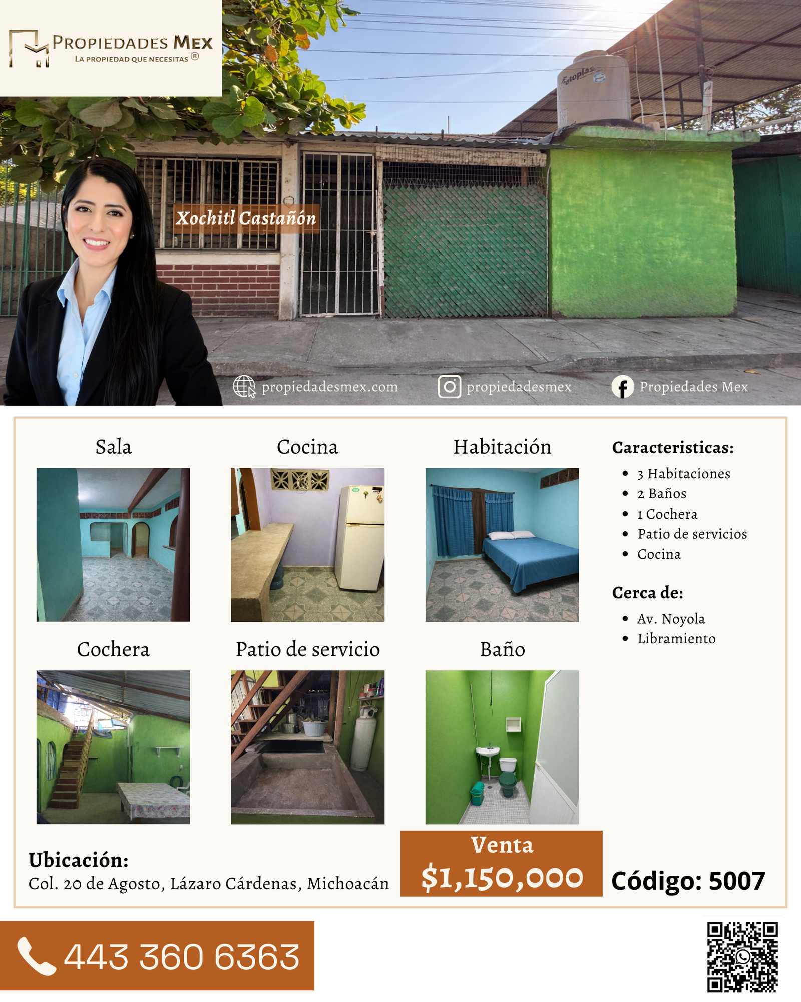 Se vende propiedad en Lázaro Cárdenas, Michoacán, ideal para quienes buscan adquirir un inmueble con una buena distribución y espacios funcionales para vivir o desarrollar un proyecto familiar.