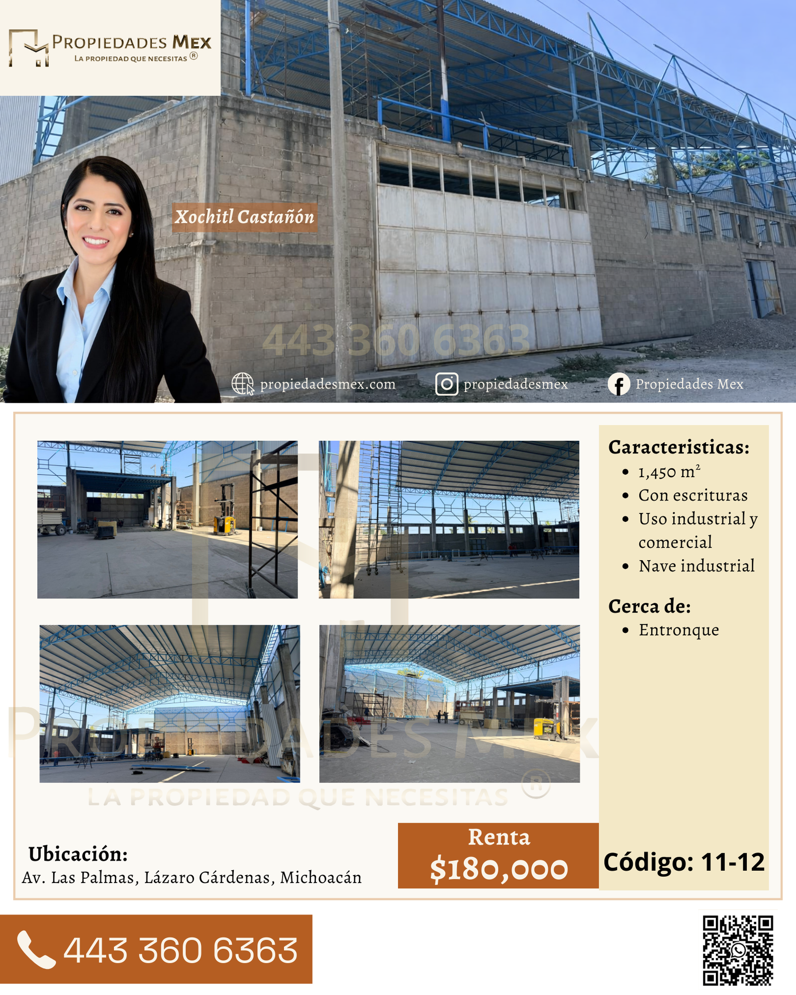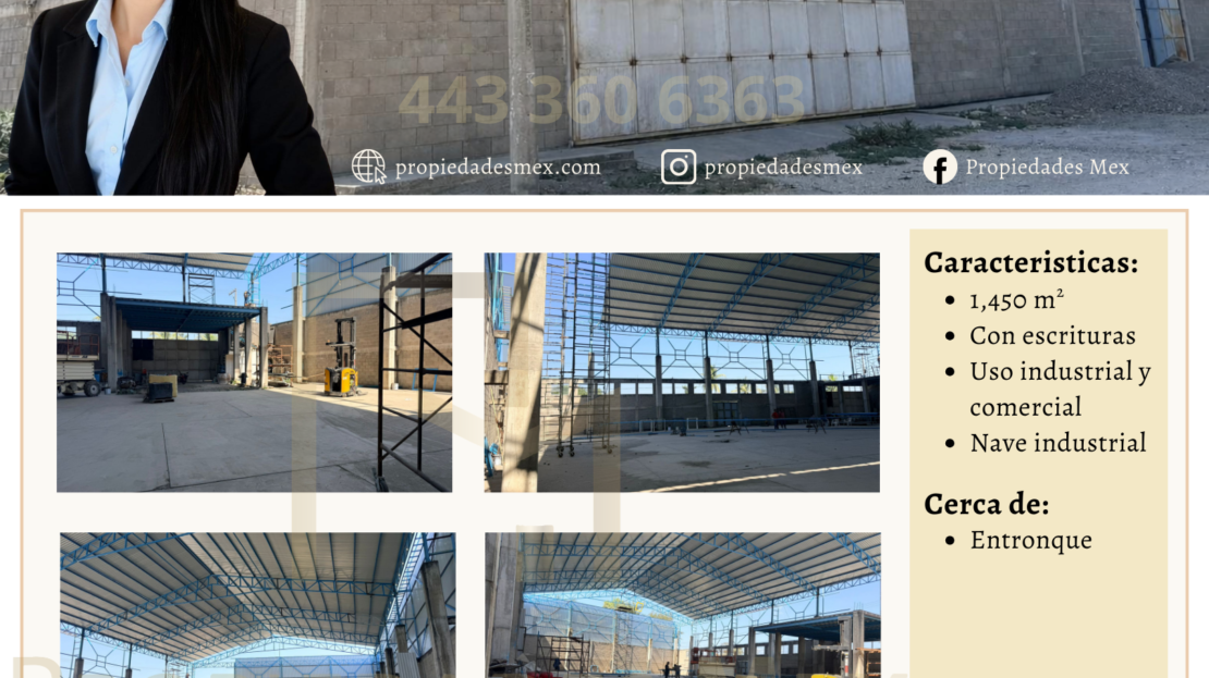 El inmueble cuenta con una superficie aproximada de 1,450 m² y está diseñado para uso industrial y comercial, lo que permite desarrollar actividades de almacenamiento, distribución, logística o procesos productivos. Actualmente la nave se encuentra en proceso de construcción y estará disponible próximamente, lo que brinda la oportunidad de planificar la instalación de operaciones con anticipación.